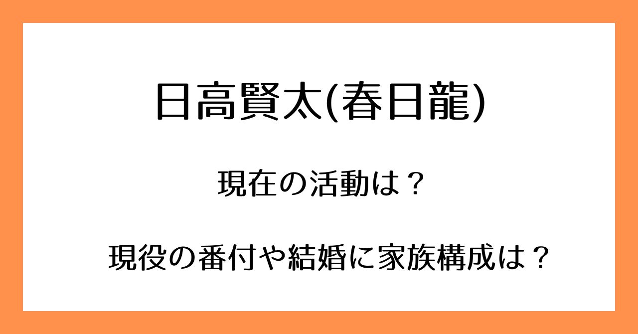 日高賢太(春日龍)さんは、2025年現在、結婚や家族に関する情報を公表していません。