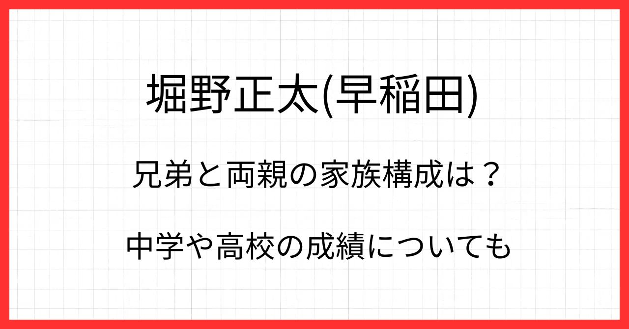 堀野正太(早稲田)の兄弟と両親の家族構成は?