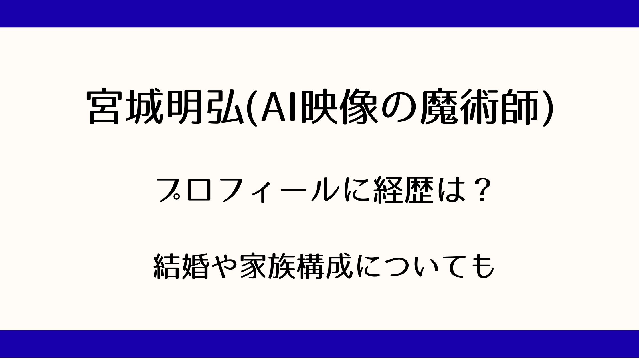 この記事では宮城明弘さんのプロフィールや経歴、AI映像への取り組みに加え、結婚や家族構成についてもわかりやすく紹介します。