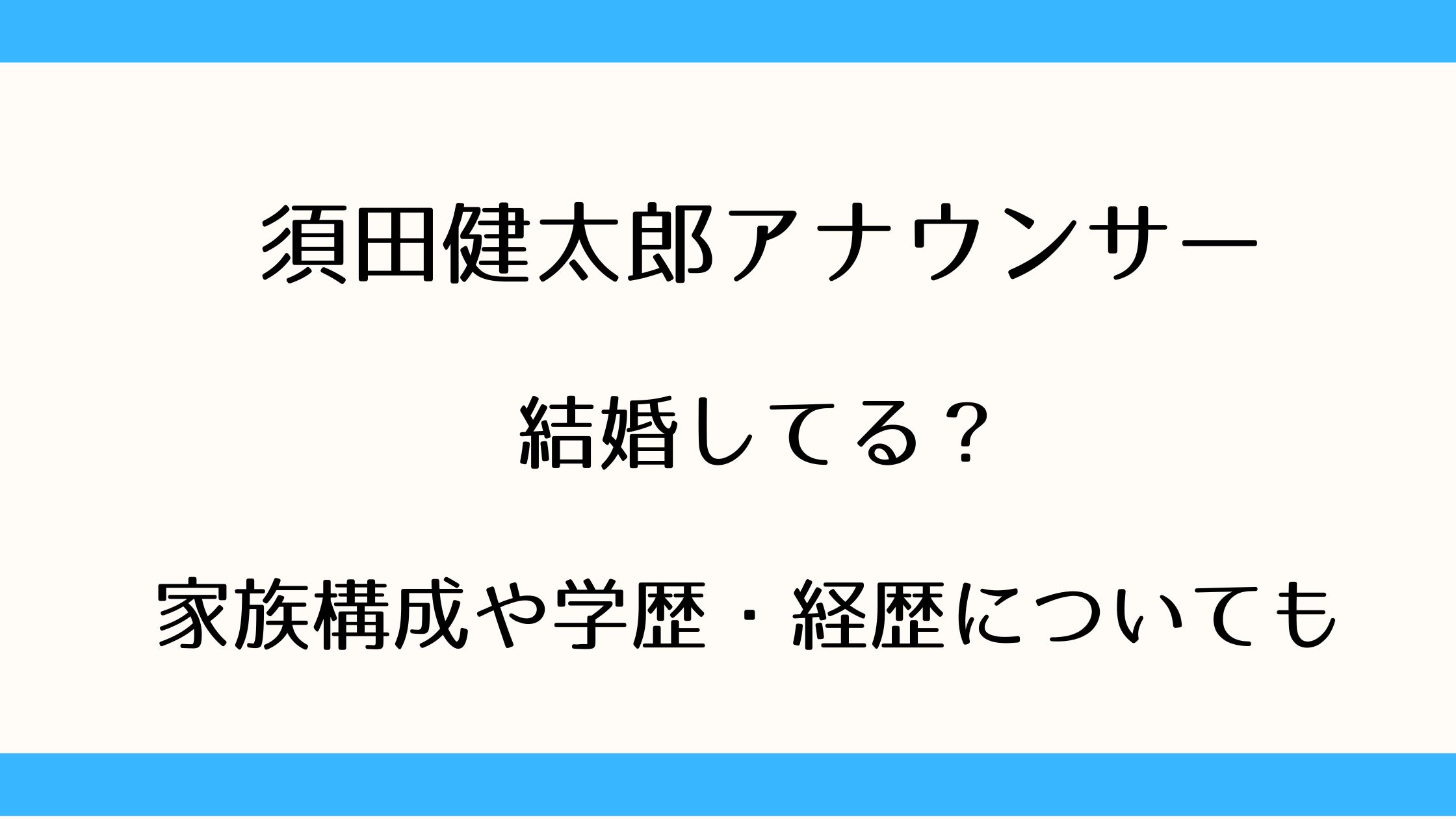 本記事では、須田健太郎アナウンサーの結婚や家族構成、学歴と経歴について整理してご紹介します。