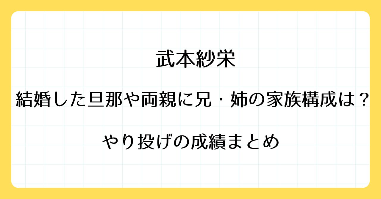 結婚や家族に関するエピソードとともに、武本紗栄選手の成績についても紹介します。
